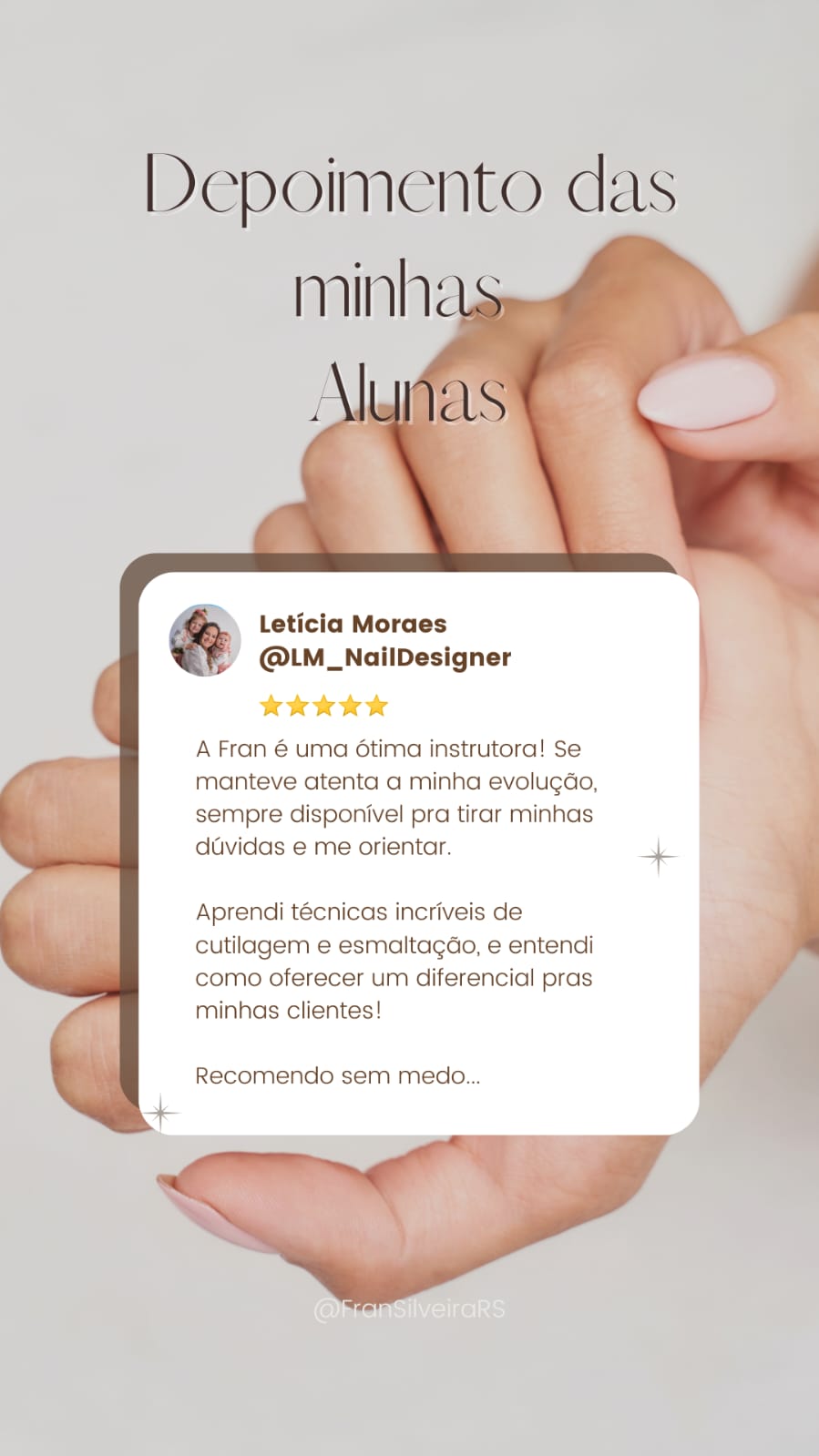 Tenho certeza vou te ajudar a desenvolver as habilidades necessárias para você se tornar uma Nail Designer de sucesso.